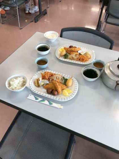 野外活動の山・海プログラムが無事に終了。入浴も終えて食堂に集合!