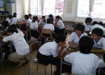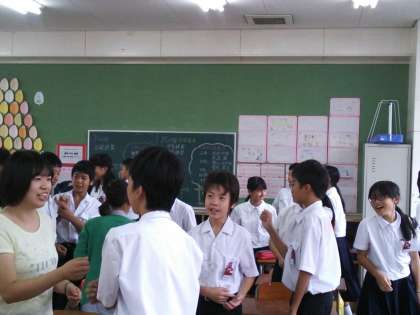 下の写真は講師の先生の指示により、「ひたすらじゃんけん」「足し算トーク」を行っている様子です。