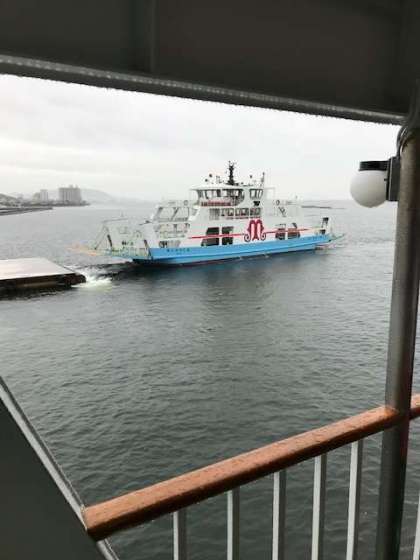 宮島口フェリー乗り場に到着し、8時半過ぎに乗船しフェリーで移動、宮島・厳島神社を目指して。