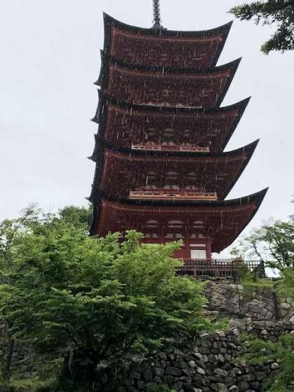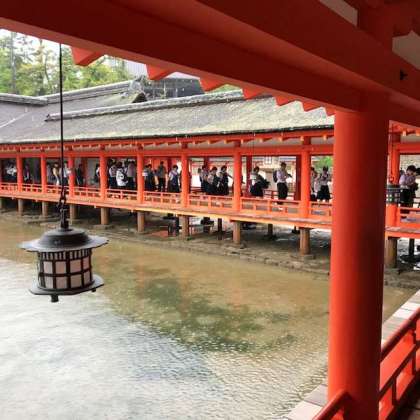 宮島・厳島神社に到着。天気は、あいにくの雨模様。
