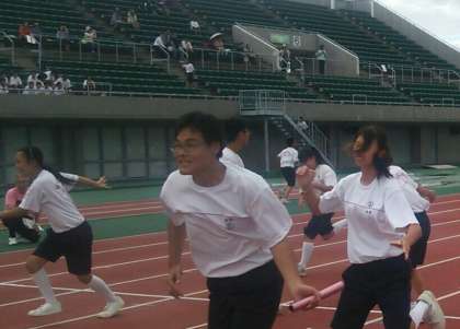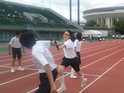 体育大会最後のプログラム3年生による全員リレーの様子です。この種目の1位は2組でした。