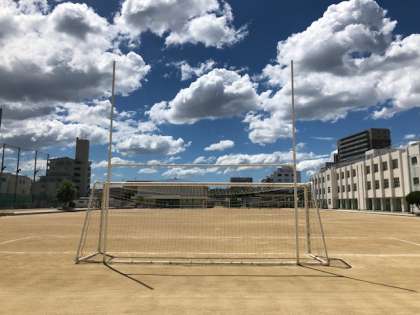 会場設営の準備が整いました。6ブロックの中でも、サッカーだけでなく多くの種目の会場校として利用されるのが、中野中学校の自慢のグラウンドです。