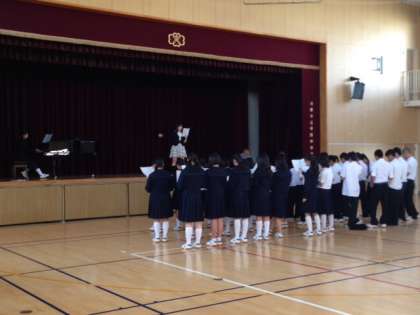 10月8日(水)の6時間目、2年生は体育館で合唱コンクールに向けて歌の練習を行いました。下の写真は2年4組の様子です。10月29日(水)に向けて頑張りましょう!