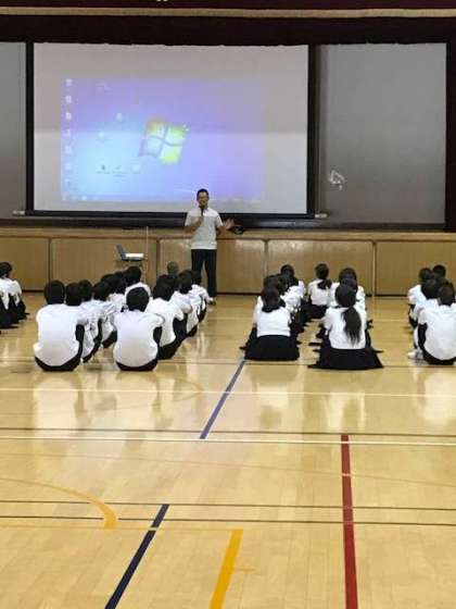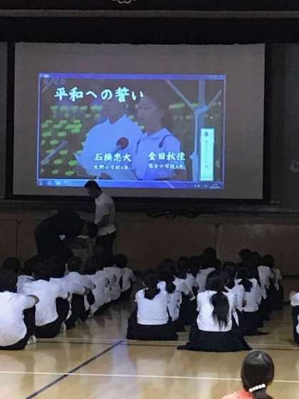 2年生は4限目を利用して、体育館で平和学習を行いました。