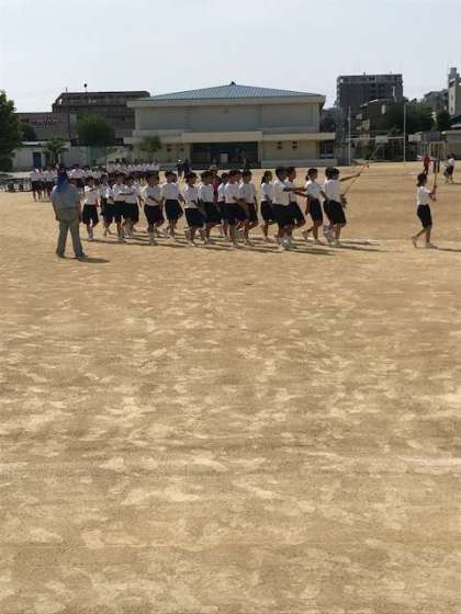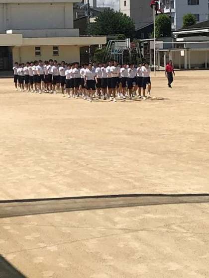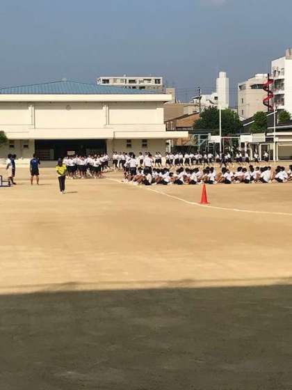 9月27日(金)に開催される体育大会に向けて、第1回目の学年練習が行われました。1〜2限が3年、3〜4限が2年、5〜6限が1年生と学年ごとに時間を分けて行進や入退場、校歌の斉唱などの練習を行いました。暑い中、みんな真剣に取り組んでいました。すばらしい体育大会になりそうです。