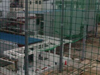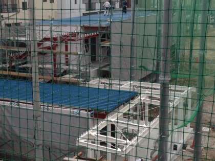 中野中学校では、昨年6月から始まった中野中学校増築その他の工事で現在、クラブハウスと給食配膳室をつくっています。12月末までには完成の予定です。
