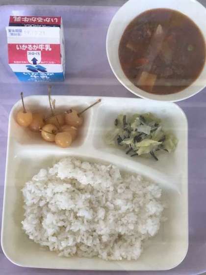 キャベツのひじきドレッシング、さくらんぼ(缶)