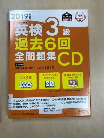 校長経営戦略支援予算の加算配布分で、図書館に準2級、3級問題集を購入しました。