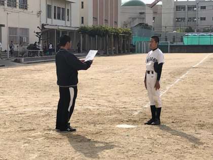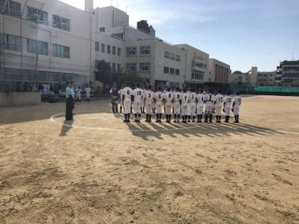 3つのリーグから1位通過の3校と各リーグ2位の中で最も得失点差の少ない1チームが決勝トーナメントに上がれるブロック大会で、中野中学校野球部は見事リーグ戦全勝で決勝トーナメントに進出することができました。11月3日(日)に行われた準決勝は、同リーグで勝利した田辺中学校でした。初回に相手の猛攻で2点をとられ、1点返すも、さらに1点取り返され、結果1−3で敗退しました。秋の新人戦は大阪市で準優勝するも、府の大会ではチーム状況も悪く1回戦敗退。ブロック大会は自分たちの力で「優勝」を掴むという目標のもと頑張ってきましたが、まだまだ力不足でした。この悔しさをバネに、もっとチームメイトと本音でぶつかり、冬の厳しい練習にも積極的に取り組んでほしいと思います。これで、今年の大会はすべて終了し、今のチームもあと春の大会と夏の大会のあと二つになりました。新入生を迎え入れる前に、今年度に出た反省を生かし、来年度につなげてほしいと思います。応援にきていただいた保護者のみなさまどうもありがとうございました。