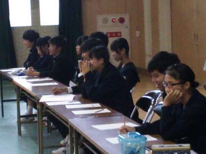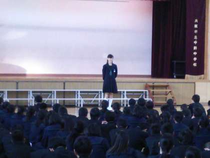 3年生は10月27日(月)5時間目から合唱コンクールを行っています。下の写真は開会の言葉、文化委員の子どもたちと先生方が審査員となって審査を行います。