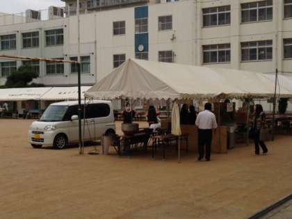 11月2日(日)、昨夜は雨でしたが、現在は曇天の状態です。早朝より中野中学校・校区4小学校PTAのみなさま、地域のみなさまがグラウンドの水抜きをはじめフェスタの準備を行っていただいております。みなさま、ありがとうございます。
