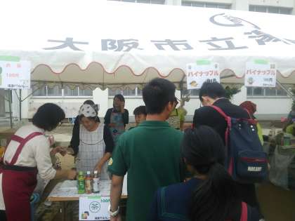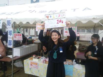 湯里小バレーボールはパイナップル、家庭科部は焼菓子、南百済小ソフトは焼きそばを販売しました。