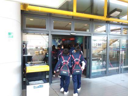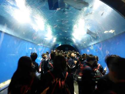 1年生は班行動で現地へ到着し、海遊館を見学します。