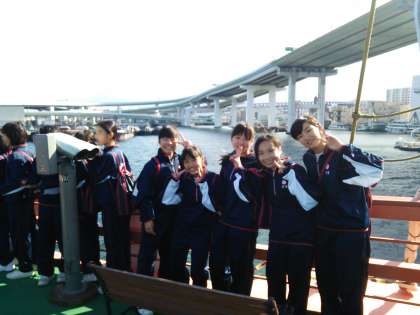昼食後、1年生はサンタマリア号に乗船しています。晴天のもと、海風が気持ち良いです♪