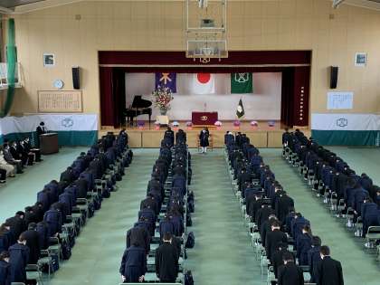コロナウィルスの影響で、規模を大幅に縮小した形ではありますが、中野中学校 第72回入学式が行われました。真新しい標準服に身を包んだ第72期生、165名の新入生たちが、元気に登校してきてくれました。教職員、生徒、保護者だけのマスク着用のうえでの入学式でしたが、在校生「歓迎のことば」新入生「誓いのことば」など、どちらも立派にやり遂げてくれました。お忙しい中、参列していただきました保護者の皆様、本当にありがとうございました。始業式以降の連絡は、このHPにて連絡させていただきますので、よろしくお願いします。