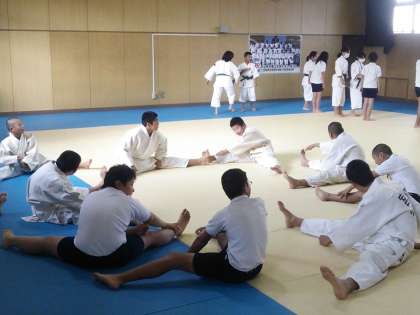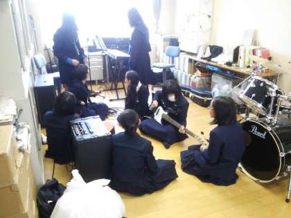 興味津々でチャレンジする児童のみなさん。下の写真は軽音楽部、柔道部、少林寺拳法部の様子です。