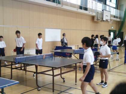 吹奏楽部のみんなによる児童のみなさんに楽器への説明、卓球部では中学生と一緒にラリーをしました。野球部ではキャッチボールをしました。