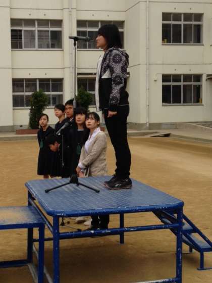 11月18日(火)朝、全校集会で校長先生から新任の先生の紹介がありました。新しく来られた先生は、英語科の池本智子先生、特別支援学級・保健体育科の野口将延先生です。生徒のみなさん、よろしくお願いします。