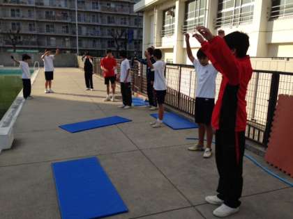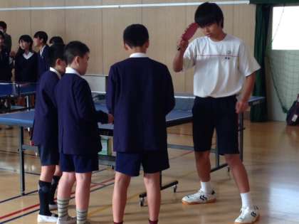 11月18日(火)6時間目に小中部活動交流会を行いました。今日は東田辺小、湯里小の児童のみなさんが中学校へ来て部活動の体験をしました。下の写真は水泳部と卓球部の様子です。