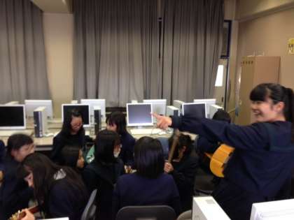 吹奏楽部、軽音楽部は中学生が児童に教えています。文芸部は児童のみんなが本を読みました。