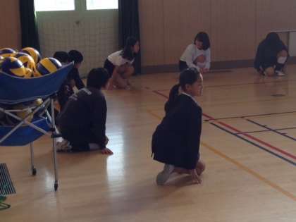 下の写真は女子バレーボール部、陸上部のアップの様子です。児童のみなさん、部活動体験はいかがでしたか?中学生の先輩たちは児童のみんなが入部してくれることを楽しみに待っています。