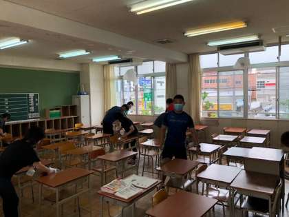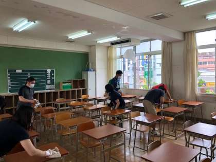 中野中学校では、感染予防のため教室を使用後、消毒作業を実施しています。