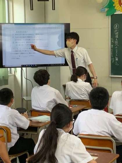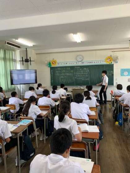 昨日は、数学の実習に来ている香川さんの研究授業が行われ、今日は理科の実習に来ている園田さんの研究授業が行われました。短い期間でしたが、ずいぶん慣れてきたようで、分かりやすい授業になっていました。がんばってくれています。