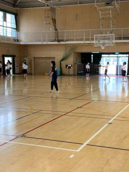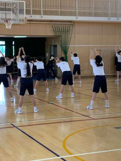 写真は、1時間目に行われた保健体育の実習生、鈴木さんの研究授業の様子です。