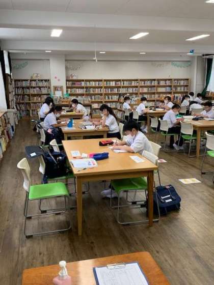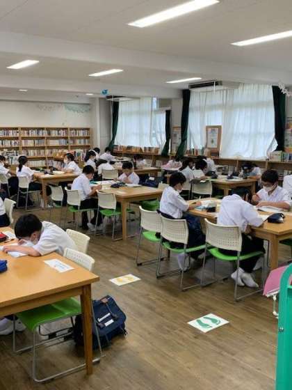15日(水)16日(木)に行われる1学期期末テストに備えて、元気アップ主催のテスト前学習会が行われました。感染予防対策をとりながら、図書室で行われました。座席の間隔をあけての開催でしたが、参加してくれたみんなは、真剣に学習していました。今回は3日間だけの開催ですが、どんどん参加してください。
