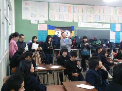 12月8日(月)6時間目に2年生の授業で校内研究授業を行いました。湯里小、南百済小、鷹合小の先生も参観していただき、その後、研究協議にも参加していただきました。
