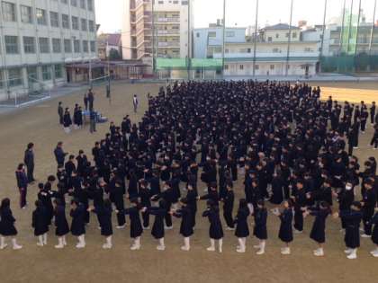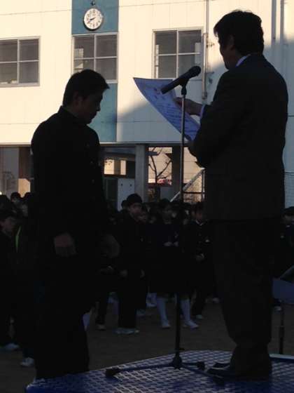 12月9日(火)朝、久しぶりの全校集会を行いました。今日はラグビー部、女子バスケットボール部、少林寺拳法部の表彰の後、山本校長先生から「12月に入り、2学期も残すところあとわずかとなりました。3年生にとって2か月後には私学の入試があります。その1か月後には卒業式を迎えます。とても大切な時期を迎えます。今を大事にしっかりと元気に過ごしましょう。」とお話をされました。