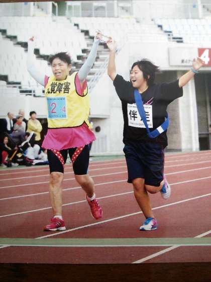 第一競技場)で行われました。それにも視覚障害者ランナーの伴走者として、また自分