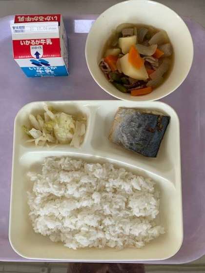 さごしの塩焼き、豚肉とじゃがいもの煮もの、