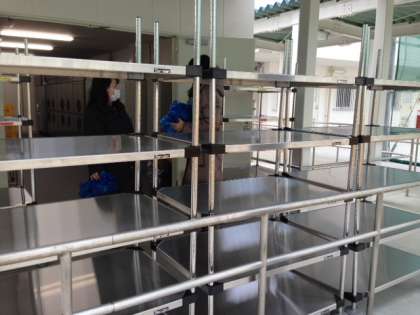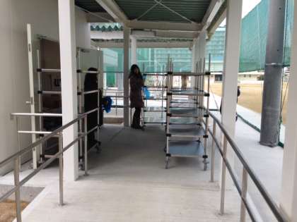 1月8日(木)より新しい配膳室で給食が始まりました。この配膳室は中野中学校増築その他の工事で造られたもので、真新しい配膳室です。生徒のみなさん、場所が変わりましたので間違えないようにしてください。