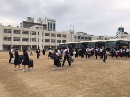 修学旅行、学校出発
