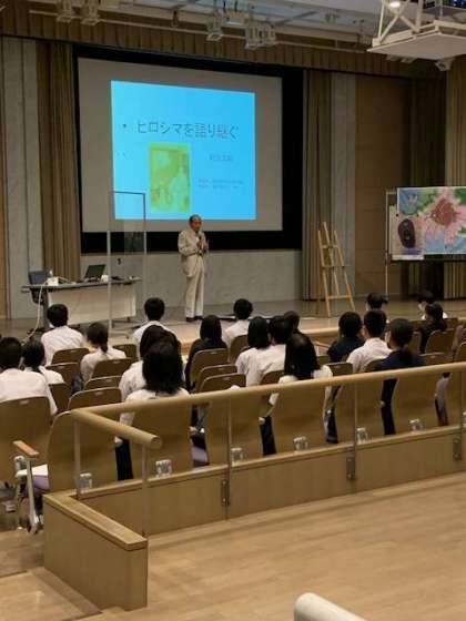 2会場に分かれて、それぞれ被爆体験者の講話を聞いて、原爆のことや当時の事、平和について学びます。