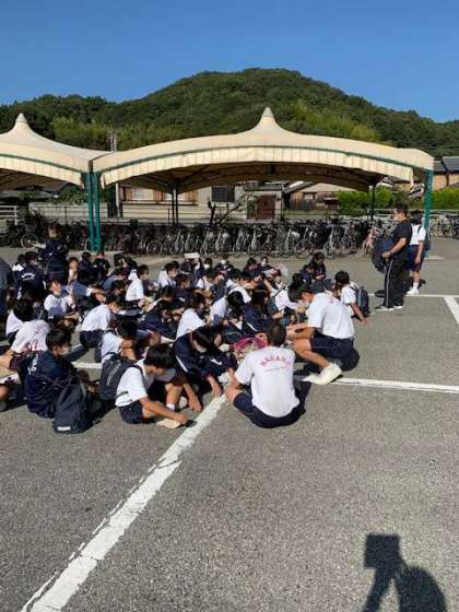 全クラス、無事に自然体験学習が終了。予定時間通りにバスに乗車。