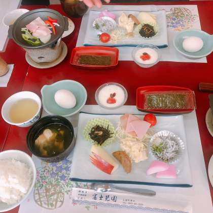 3組、昨日の夕食、今日の朝食メニュー。退館式後、出発。