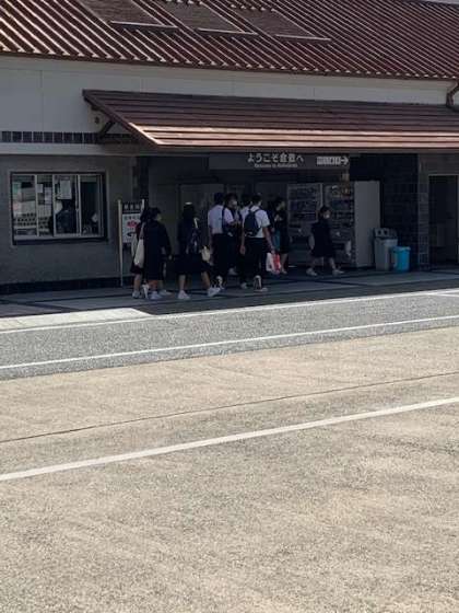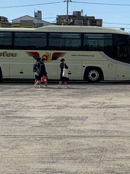 この後バスに乗車して、13時53分に学校に向かって出発。