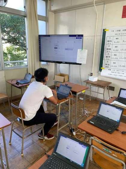 全体で50%以上の参加者があり、接続もほぼうまくいったようで、担任の先生と画面を見ながらの会話ができました。さらに準備を進めていきたいと思います。