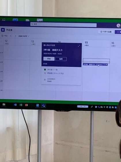 中間テスト1日目を利用して、午後、生徒たちの下校後の時間帯で、クラスごとに全学年で双方向通信 Teamsの接続テストを行いました。