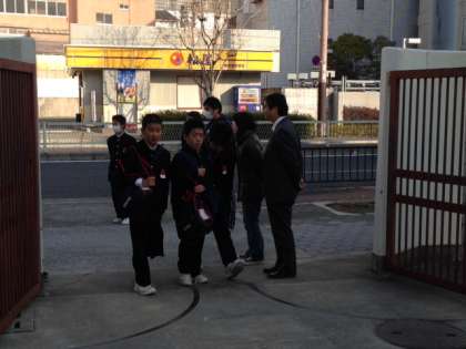 1年生はインフルエンザが学年間で広がり、本日は健康観察として9時25分〜9時40分の間に北門から登校しました。