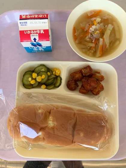 まぐろのオーロラ煮、ベーコンとじゃがいものスープ、