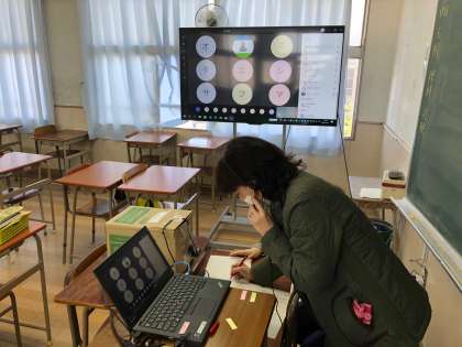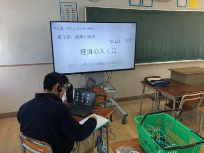 12月5日(土)、3年生は初めてオンライン授業に取り組みました。心配していた回線トラブルもなく1組理科、2組数学、3組国語、4組英語、5組社会と各教科で工夫を凝らした内容で、学校と同じく45分間の授業を実施できました。