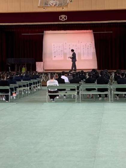 今回は、山先生が、ご自分の実体験(父親からの聞き取り等)も踏まえて、講演会のような形で戦争の恐ろしさや影響、平和の大切さなどを生徒に訴える形で進みました。そのあと教室にもどり、一人ひとりが感想などをまとめました。