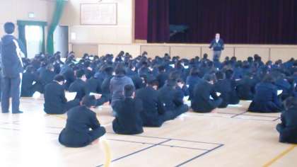 金曜日の6時間目 1年生は、進路指導主事の吉田先生から