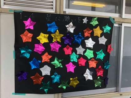 1年生校舎を巡回すると廊下に星が散りばめられていました。