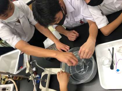理科室で化学の実験をしていました。