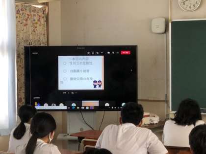 長い1学期も今日で最後となりました。今日は東住吉警察の方に来ていただいて、夏休み前の非行防止教室を実施してもらいました。夏休み中に事件・事故に巻き込まれないようにしてください。また、終業式はチームズで実施しました。3年生は特に計画を立てて学習して2学期の準備をしてください。