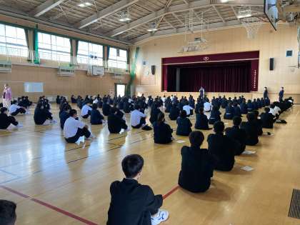 今日は福田先生から高校入試の面接に向けて、立ち居振る舞いや身だしなみのお話がありました。